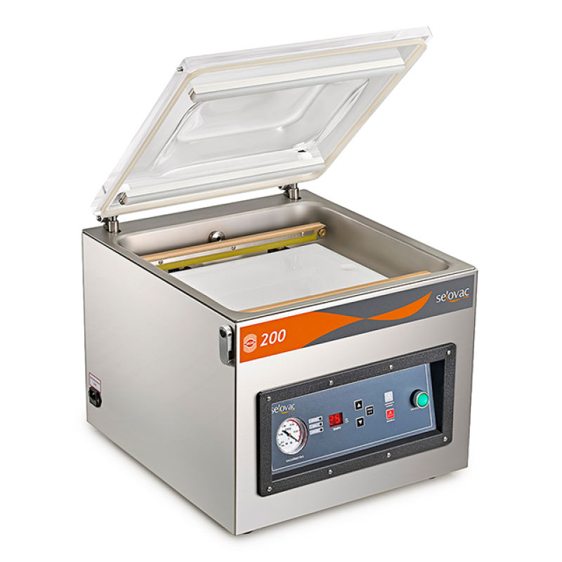 Seladora de Câmara Simples 200II, ideal para prolongar o frescor e o prazo de validade de alimentos. Conveniente para padarias, açougues, supermercados, pequenos e médios negócios que buscam melhorar a conservação de seus produtos. A seladora aumenta até 5 vezes a validade dos alimentos, retirando até 99,8% do ar do pacote e reduzindo a reprodução de micro-organismos.