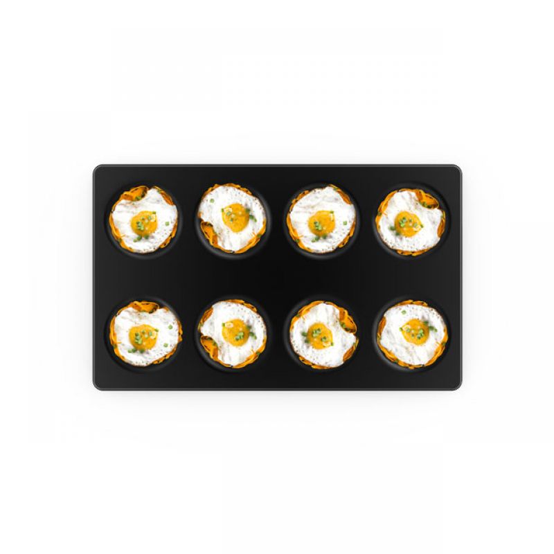 Bandeja em alumínio com revestimento antiaderente projetada para cocção de até 8 ovos em menos de 3 minutos, ideal para: ovos fritos; omeletes; panquecas; tortilhas.